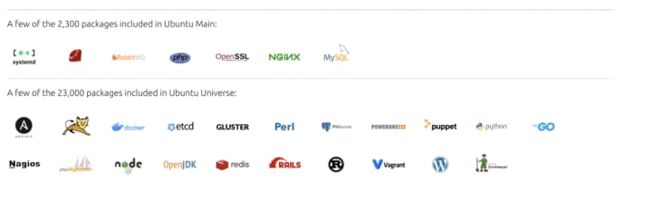 このため、Ubuntu Proは、Ubuntuで利用可能な3万種類のdebパッケージのエコシステム全体に長期的なサポートを提供しています。これらのアプリケーションはUbuntuリポジトリから直接インストールでき、NGINX、MongoDB、Redis、PostgreSQLなどの一般的なソリューションも含みます。